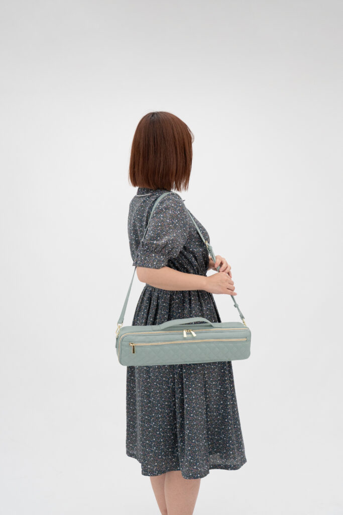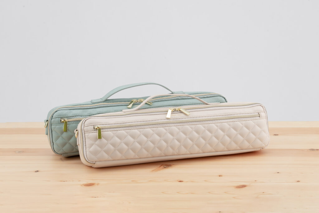 Legato Largo® × Pearl Flute コラボレーション・バッグより、ダイヤ柄キルティング生地を使用したフルートケースカバーが、ご好評につき第3 弾・数量限定で再登場。C・H 足部管両用で、フルートを机などに置くときに使用できるフルートマットを同梱。内側には厚手のボア素材を採用し、大切な楽器を衝撃から守ります。 第3 弾のカラーは、爽やかで可愛らしい印象のミントグリーンと、上品で組み合わせ自在なアイボリーの2 色をご用意しました。