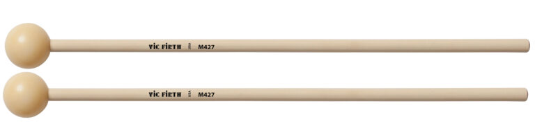 VIC-M428には、ハードタイプの31.8mm径、アセタール製ヘッドが特徴です。音響的にこのマレットは抒情的な音色を生み出し、シロフォンやグロッケンの様々なレパートリーに最適です。「ハーリ・ヤーノシュ」や「火の鳥」のシロフォンにおすすめ。