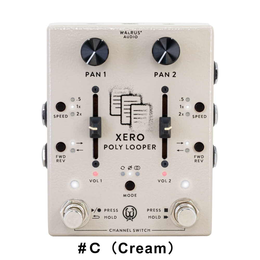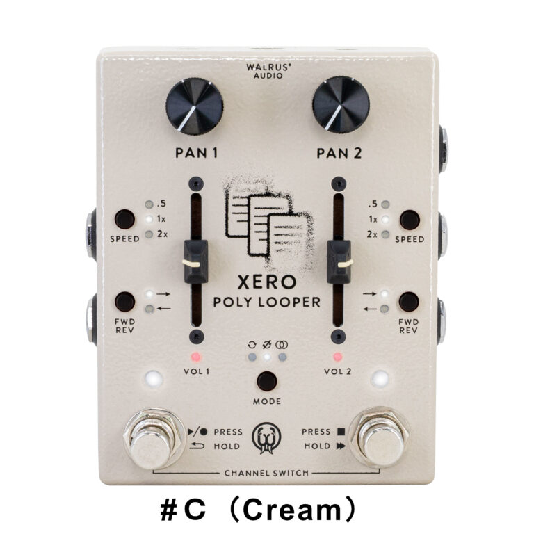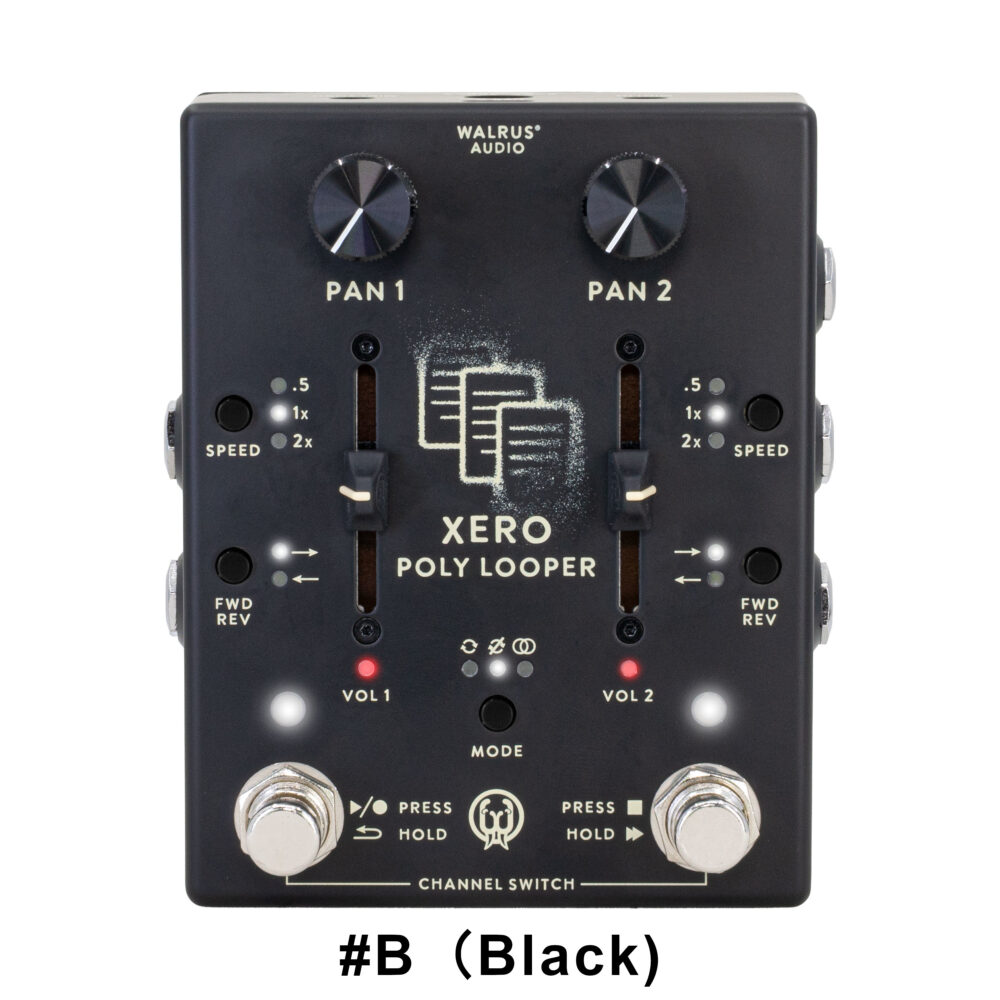 Xero Polylooper は、トゥルーバイパス方式のデュアルチャンネルルーパーです。各チャネルが独立して制御でき、ステレオパン、可変再生速度、リバース機能、3 種類のループモード、直感的なストンプ操作などの機能を搭載した、演奏、アイデア作り、ステージ上でのテクスチャを構築するのに強力な武器になるルーパーです。